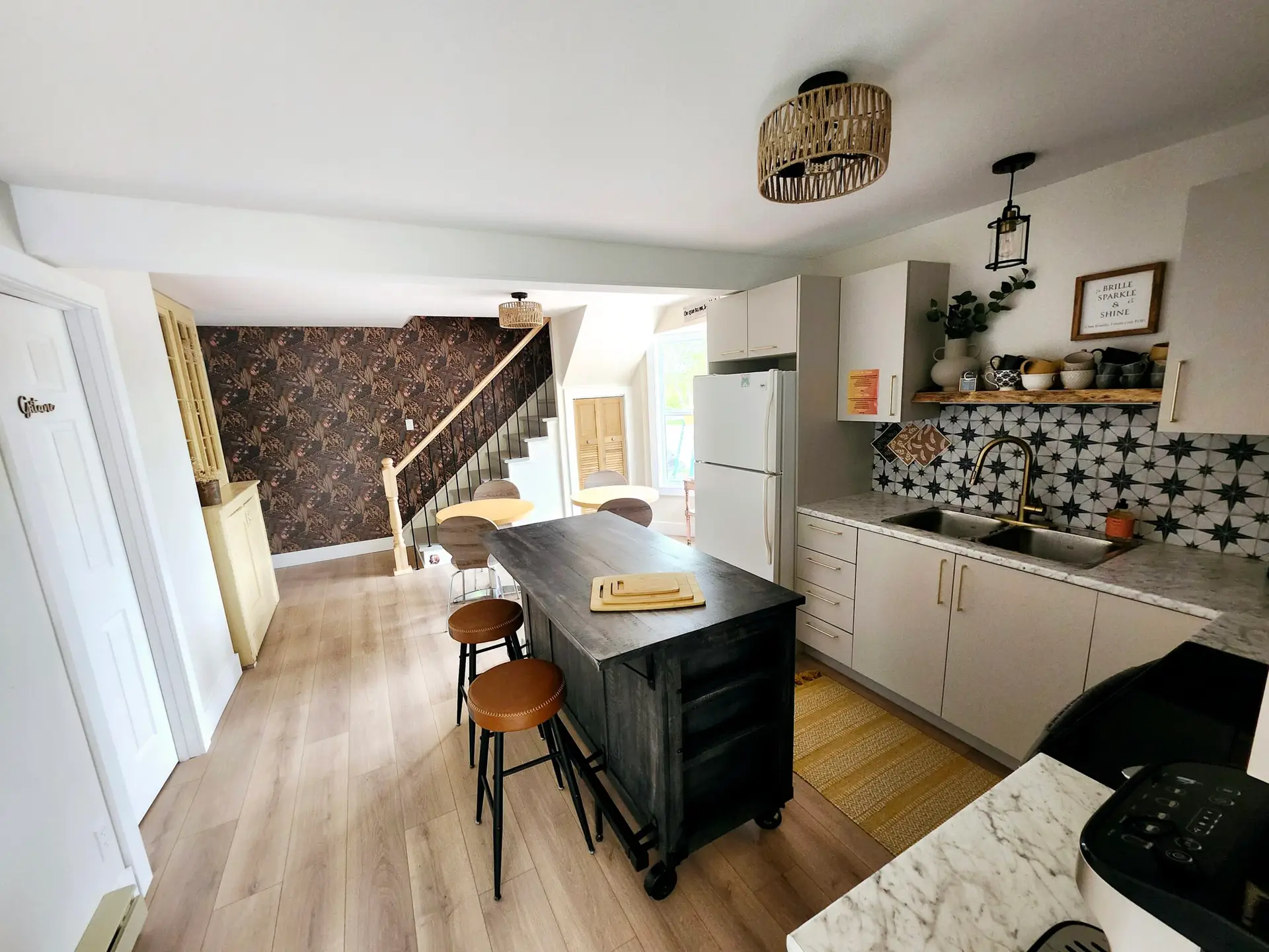 The gourmet heart of our accommodation is the full kitchen where flavors and smiles meet. This friendly space is shared between our two rooms, inviting you to cook your favorite dishes.